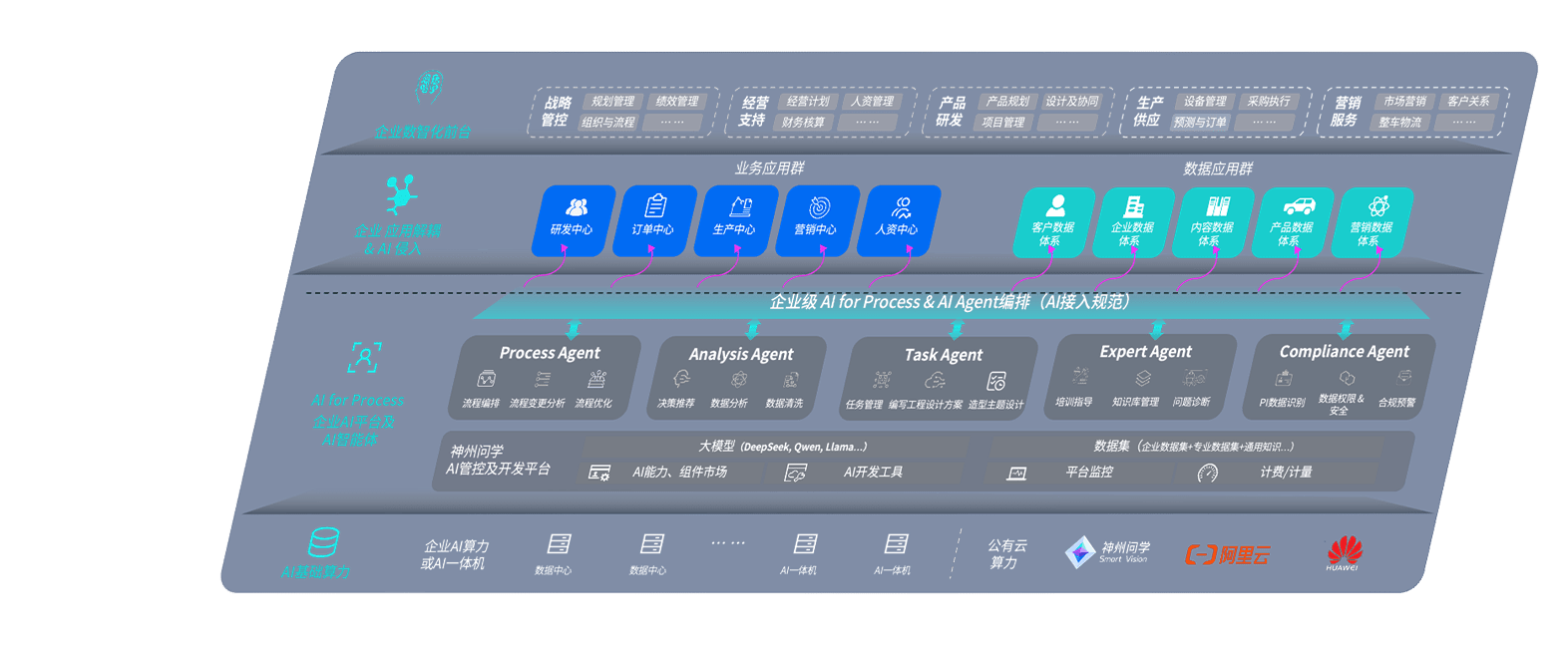 逐梦国际问学智车解决方案是一套基于AI技术的汽车行业智能化系统,,,覆盖从底层算力到顶层AI应用的全栈方案。。方案由算力层、、模型层和应用层组成:算力层,,,方案支持多种一体机配置,,,,具备云端灵活部署、、多云适配以及动态优化计算资源的能力;模型层,,,逐梦国际问学平台版提供了企业级AI应用一站式构建与管理平台,,,,支持基于后训练强化技术的汽车企业专属模型的训练、、、评测和运营;应用层,,,逐梦国际问学DeepSeek版提供包括超级员工、、、智能招采、、、、智能营销、、智能客服、、、、AI for BI等一系列解决方案,,可助力汽车行业实现数字化转型,,,,让管理更智能、、、响应更敏捷。。。